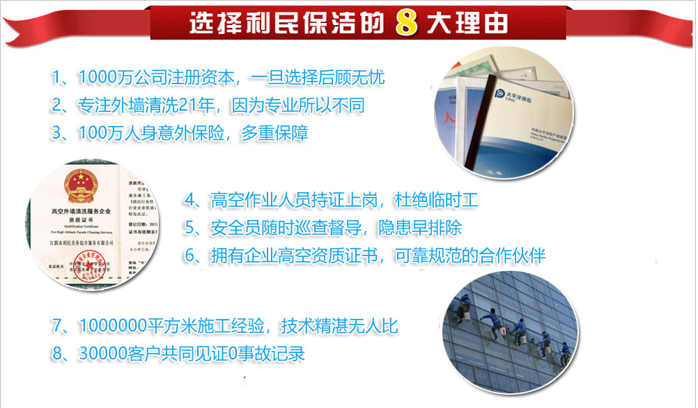 ![]() 利民,高空清潔行業(yè)的卓越領(lǐng)跑者。我們的外墻清洗業(yè)務(wù)包括:外墻清潔、外墻防水補漏、外墻涂料粉刷、LED樓體亮化工程高空安裝、外墻防水工程高空施工等系列高空作業(yè)項目,是物業(yè)公司、景觀工程公司、廣告公司、建筑、安裝公司、幕墻公司、各企事業(yè)單位等最佳高空作業(yè)服務(wù)專業(yè)供應(yīng)商.專業(yè)安全高效,承包高空外墻清洗,.專業(yè)的施工團隊,所有人員均持證上崗,高空人員均購買100萬保險,21年1000000平方的外墻清洗經(jīng)驗,優(yōu)質(zhì)的服務(wù)..[詳細] 經(jīng)典案例更多 >